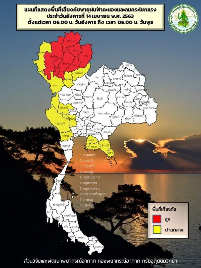 เตือน !! "พายุฤดูร้อนบริเวณประเทศไทยตอนบน (มีผลกระทบจนถึงวันที่ 14 เมษายน 2563)"