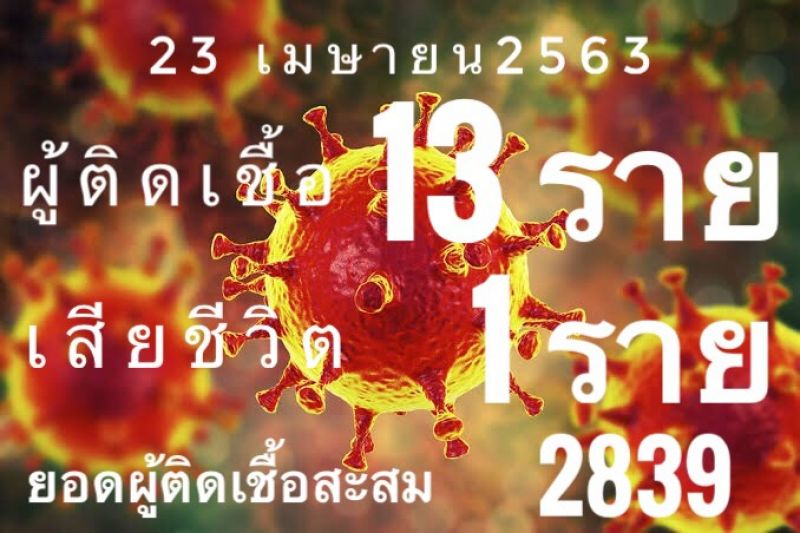 ประเทศไทยติดเชื้อเพิ่มวันนี้ 13 ราย ยอดผู้ป่วยสะสม 2,839 ราย