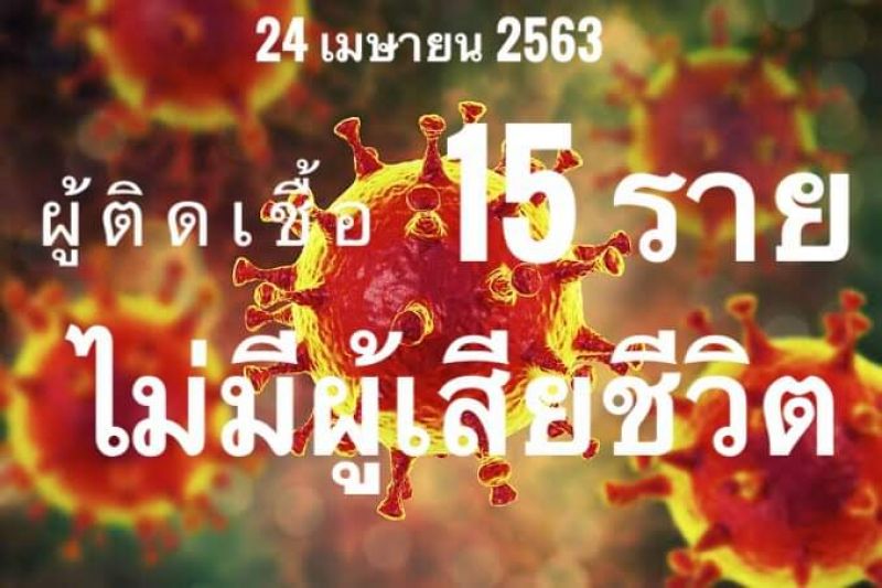 ประเทศไทย 24 เมษายน 2563 ติดเชื้อเพิ่มอีก15ราย ยอดผู้ติดเชื้อสะสม 2,854 ราย กลับบ้านได้เพิ่มอีก 60 ราย