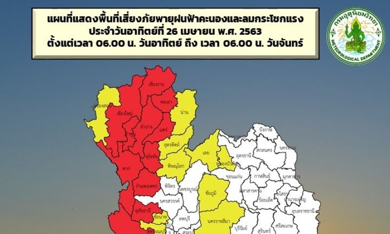 | • พยากรณ์อากาศ ประจำวันที่ 26 เมษายน 2563 ภาคเหนือตอนบนยังคงมีพายุฤดูร้อน |