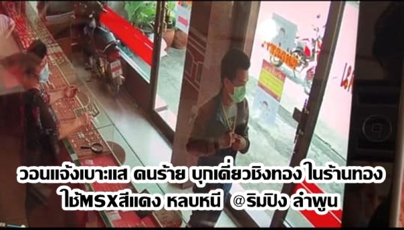วอนแจ้งเบาะแส คนร้าย บุกเดี่ยวชิงทอง ในร้านทอง ใช้MSXสีแดง หลบหนี @ริมปิง ลำพูน
