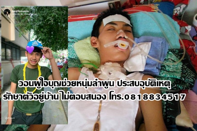 | • วอนผู้ใจบุญช่วยหนุ่มลำพูน ประสบอุบัติเหตุ รักษาตัวอยู่บ้าน ไม่ตอบสนอง โทร.0818834517 |