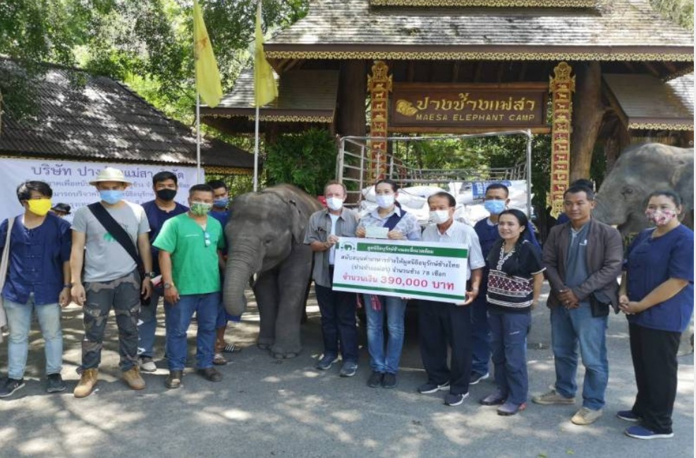 4 พ.ค. นางแสงเดือน ชัยเลิศ เจ้าของศูนย์บริบาลช้าง และประธานมูลนิธิอนุรักษ์ช้างและสิ่งแวดล้อม มอบเช็คสั่งจ่ายเงินจำนวน 390,000 บาท พร้อมอาหารเม็ดสำหรับช้างกว่า 10 กระสอบ แก่นางอัญชลี กัลมาพิจิตร กรรมการผู้จัดการใหญ่ปางช้างแม่สา ที่มารับมอบเพื่อนำไปดูแลช้างในปาง 78 เชือก ในจำนวนนี้มีช้างชราถึง 15 เชือก