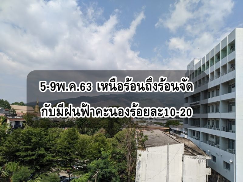 ในช่วงวันที่ 5 - 9 พ.ค. 63 อากาศร้อนถึงร้อนจัด กับมีฝนฟ้าคะนองร้อยละ 10-20 ของพื้นที่