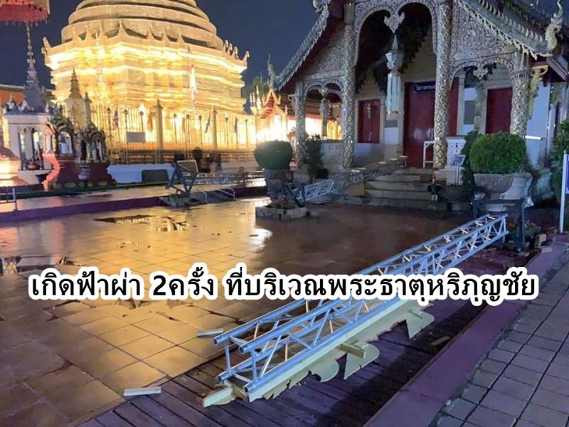 เกิดฟ้าผ่า 2ครั้ง ที่บริเวณพระธาตุหริภุญชัย ลำพูน