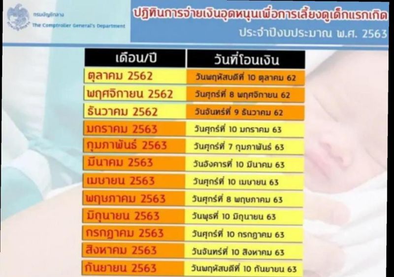 เงินอุดหนุนบุตร หรือเงินจากโครงการเงินอุดหนุนเพื่อการเลี้ยงดูบุตรแรกเกิด เป็นโครงการที่ช่วยลดค่าใช้จ่ายของพ่อแม่ที่อยู่ในครอบครัวที่ลำบาก โดยทางรัฐบาลจะช่วยค่าเลี้ยงดูบุตรให้คนละ 600 บาทต่อเดือน ตั้งแต่แรกเกิดไปจนถึงอายุ 6 ขวบเลยทีเดียว ล่าสุดวันนี้ 8 พค 63 มีการจ่ายเงินอุดหนุนเพื่อการเลี้ยงดูบุตรแรกเกิด ประจำเดือนพฤษภาคม 2563 ที่แม่ๆหลายคนรอคอย ซึ่งจะเบิกจ่ายให้กับผู้มีสิทธิ ดังนี้สำหรับผู้ลงทะเบียนรายใหม่ที่ผ่านการพิจารณาแล้ว และมีการบันทึกข้อมูลสมบูรณ์อยู่ในระบบฐานข้อมูลของโครงการเงินอุดหนุนฯ ภายใน 25 เมษายน 2563