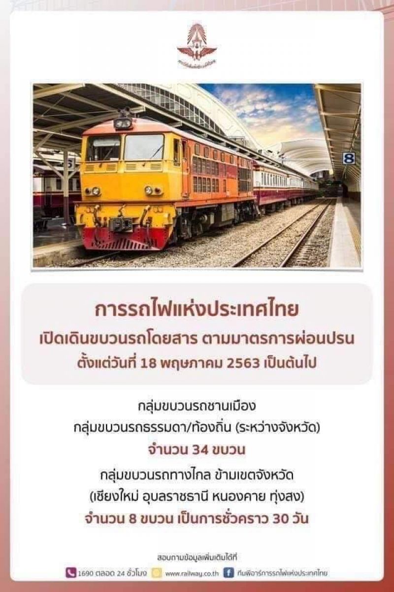 | • เตรียมให้บริการรถไฟ ทั่วประเทศ 18 พฤษภาคม 63 |