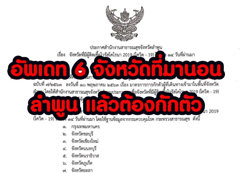 อัพเดท 6 จังหวัดที่มานอนลำพูนแล้วต้องกักตัว (25พ.ค.63)
