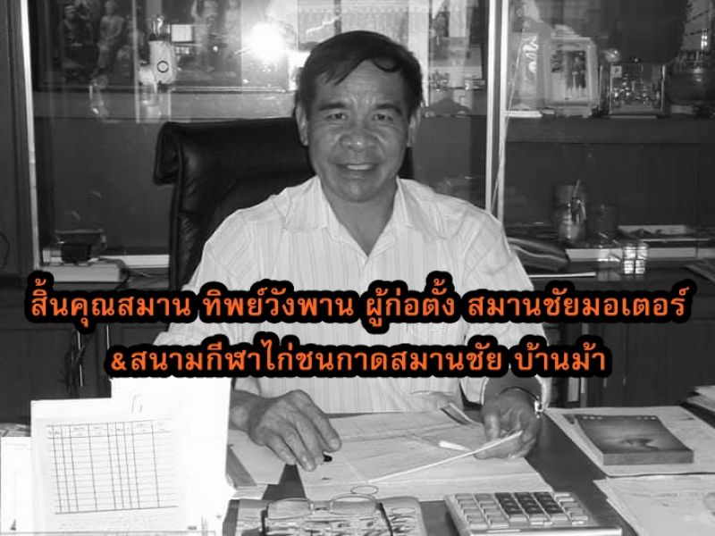 | • สิ้นคุณสมาน ทิพย์วังพาน ผู้ก่อตั้ง สมานชัยมอเตอร์&สนามกีฬาไก่ชนกาดสมานชัย บ้านม้า |