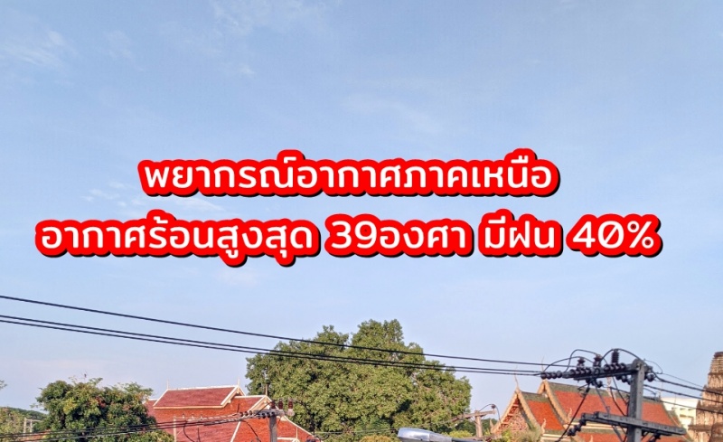 | • พยากรณ์อากาศภาคเหนือ อากาศร้อนสูงสุด 39องศา มีฝน 40% |