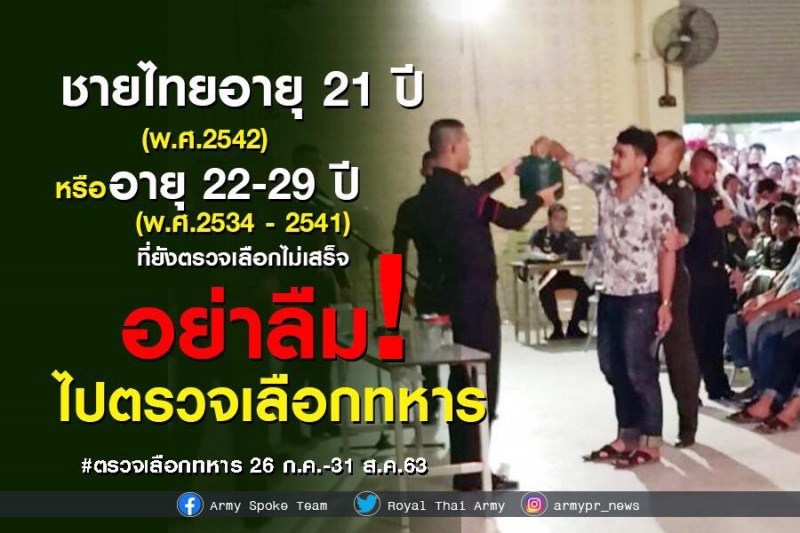 | • ชายไทยเตรียมตัว!!! เกณฑ์ทหาร 26 มิถุนายน-22 กรกฎาคม 2563 |