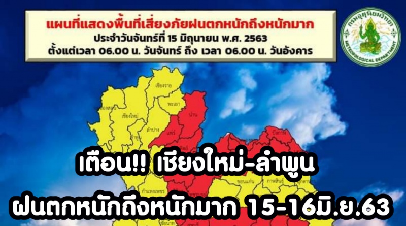 | • เตือน!! เชียงใหม่-ลำพูน ฝนตกหนักถึงหนักมาก 15-16มิ.ย.63 |
