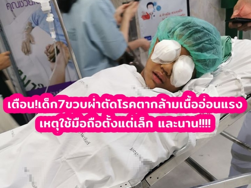 | • เตือน! เด็ก7ขวบ เข้าผ่าตัดโรคกล้ามเนื้อตาอ่อนแรง เหตุใช้มือถือตั้งแต่เล็กและนาน! |