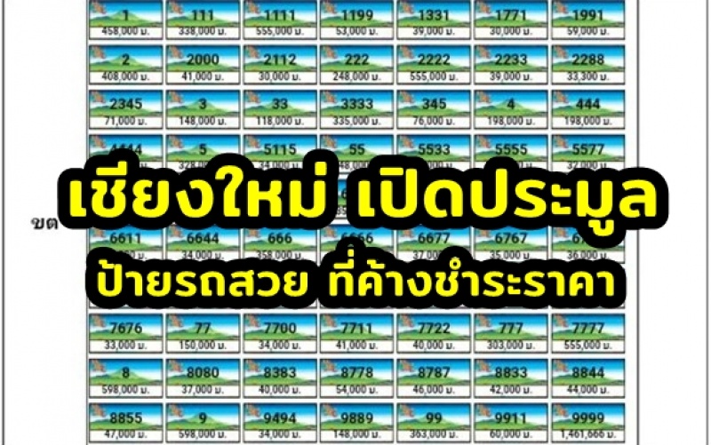 เชียงใหม่เปิดประมูลป้ายรถสวย ที่ค้างชำระ เริ่ม 20 กรกฎาคม 2563