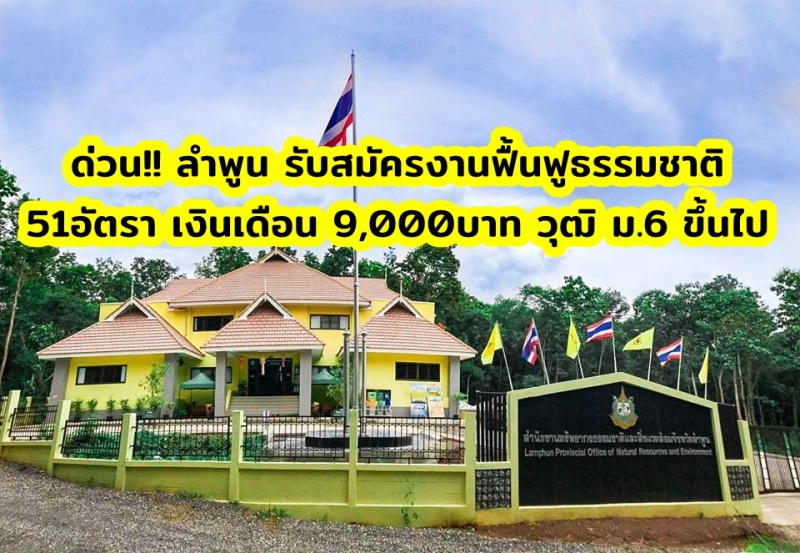 ด่วน!! ลำพูน รับสมัครงานฟื้นฟูธรรมชาติ 51อัตรา เงินเดือน 9,000บาท วุฒิ ม.6 ขึ้นไป
