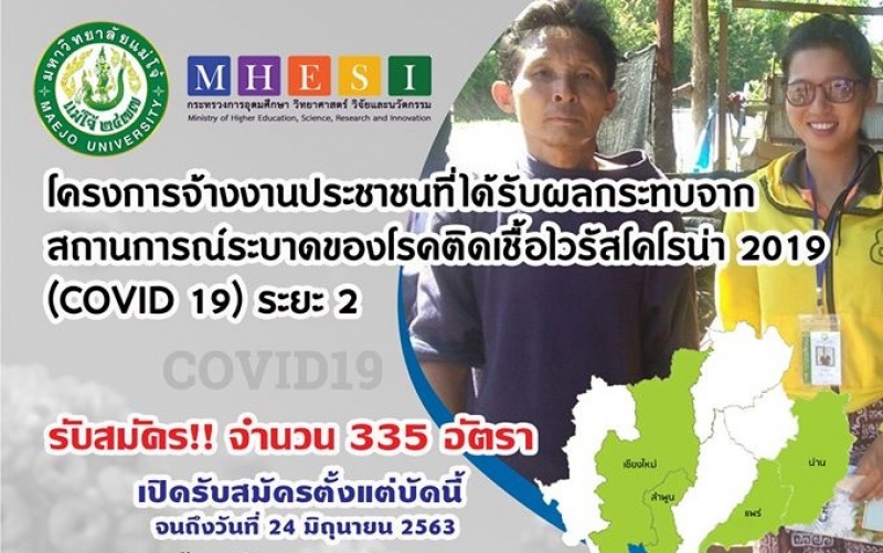 มหาวิทยาลัยแม่โจ้ ร่วมกับ กระทรวงการอุดมศึกษา วิทยาศาสตร์ วิจัยและนวัตกรรม (อว.) จัดทำโครงการจ้างงานประชาชนที่ได้รับผลกระทบจากสถานการณ์การระบาดของโรคติดเชื้อไวรัสโคโรน่า 2019 (COVID-19) ระยะ 2