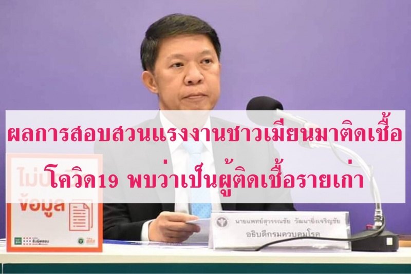 กรมควบคุมโรค กระทรวงสาธารณสุข เผยผลการสอบสวนรายละเอียดเพิ่มเติม กรณีพบแรงงานชาวเมียนมาติดเชื้อโควิด 19 ภายหลังเดินทางกลับจากไทย พบว่าผู้ติดเชื้อทุกรายเป็นผู้ติดเชื้อรายเก่าที่เคยตรวจพบ ณ ศูนย์กักผู้ต้องกัก อ.สะเดา จ.สงขลา ซึ่งการตรวจพบเชื้อซ้ำ เกิดขึ้นได้ แต่จะเพาะเชื้อไม่ขึ้นเนื่องจากเป็นไวรัสที่ถูกร่างกายทำลายแล้ว ขอให้ประชาชนมั่นใจในระบบป้องกันควบคุมโรคของไทย ที่มีความเข้มแข็งและดำเนินการอย่างเข้มข้นต่อเนื่อง