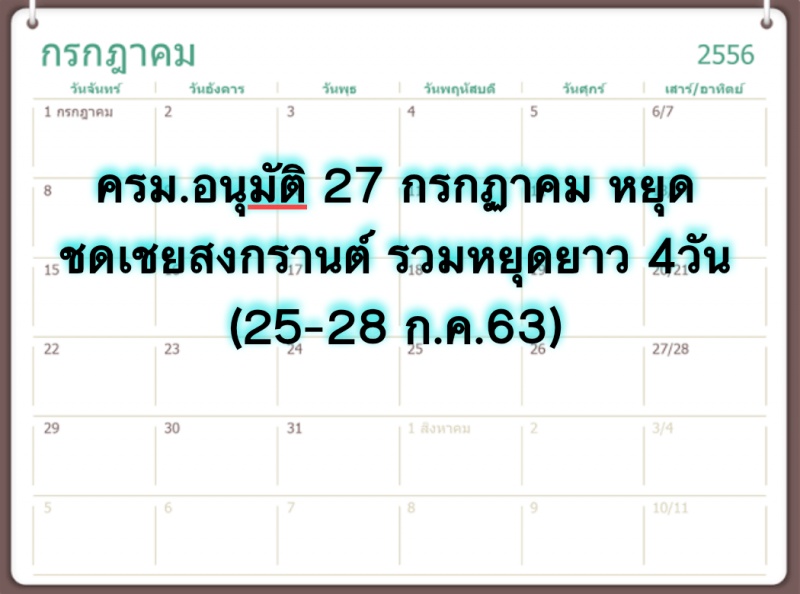 ครม.อนุมัติ 27 กรกฏาคม 2563 เป็นวันหนุดสงกรานต์ รวมหยุดยาว4วัน