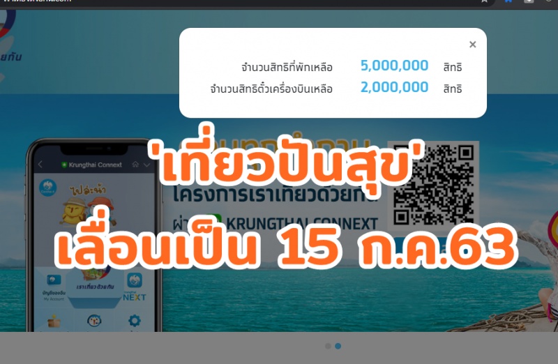 | • ลงทะเบียน 'เที่ยวปันสุข' เลื่อนเป็น 15 ก.ค.63 |