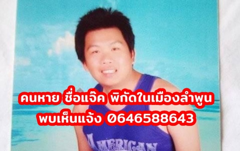 คนหาย ชื่อแจ๊ค พิกัดในเมืองลำพูน พบเห็นแจ้ง 0646588643