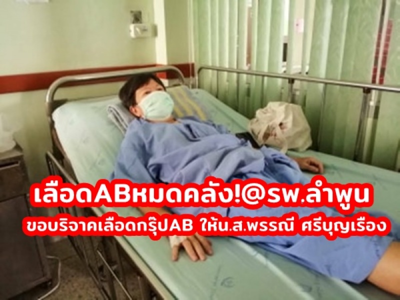 ด่วน! ขอบริจาคเลือดกรุ๊ปAB ให้น.ส.พรรณี ศรีบุญเรือง เลือดABหมดคลัง!@รพ.ลำพูน