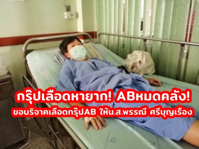 ด่วน! ขอบริจาคเลือดกรุ๊ปAB ให้น.ส.พรรณี ศรีบุญเรือง เลือดABหมดคลัง!@รพ.ลำพูน