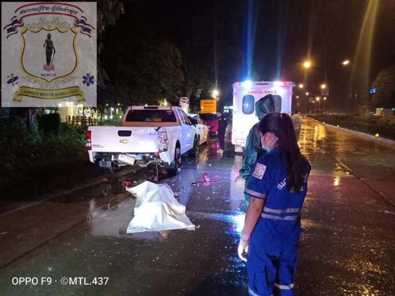 | • ขี่จยย.ฝ่าสายฝน ชนท้ายรถยนต์เสียชีวิต @ถนนลำพูน-ดอยติ |