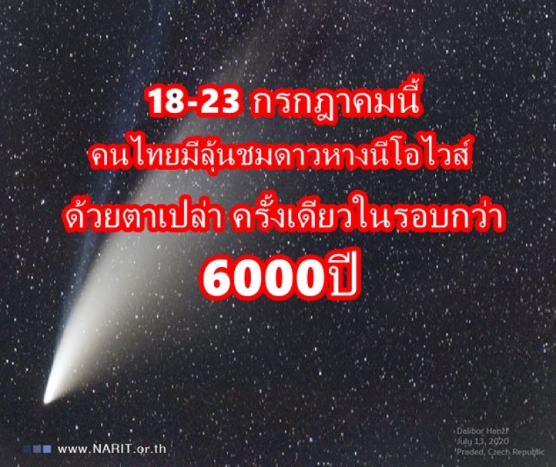 | • 18-23 กรกฎาคมนี้ คนไทยมีลุ้นชมดาวหางนีโอไวส์ด้วยตาเปล่า ครั้งเดียวในรอบกว่า6000ปี |
