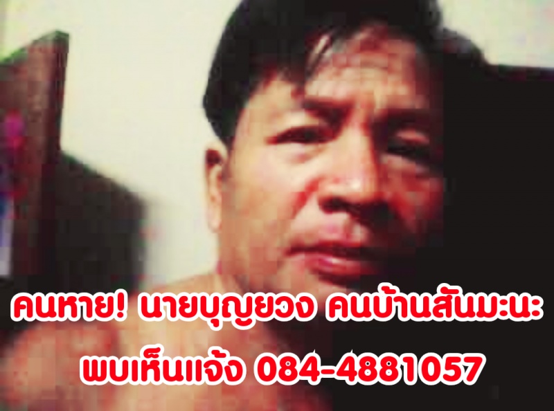 | • คนหาย! นายบุญยวง คนบ้านสันมะนะ พบเห็นแจ้ง 084-4881057 |