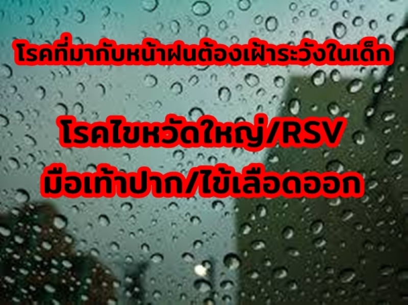 นายแพทย์สมศักดิ์ อรรฆศิลป์ อธิบดีกรมการแพทย์ เปิดเผยว่า โรคที่พบบ่อยในช่วงฤดูฝน โดยส่วนมากมักเป็นโรคที่เกี่ยวกับทางเดินหายใจ เช่น โรคไข้หวัด, ไข้หวัดใหญ่, ไข้ไวรัส RSV, ปอดบวม, หลอดลมอักเสบ, และ มือเท้าปากสาเหตุมาจาก การได้รับเชื้อมาจากคนและสัตว์ สำหรับอาการ ในส่วนของโรคไข้หวัดใหญ่ จะมีไข้สูง ไอ เจ็บคอ ปวดกล้ามเนื้อ และอ่อนเพลีย โรคติดเชื้อทางเดินหายใจไวรัส RSV มีอาการ น้ำมูกไหล คัดจมูก รับประทานอาหารได้น้อย หลังจากนั้น 1-3 วัน จะมีอาการ ไอ มีไข้ หายใจลำบาก และอาจมีเสียงดังตอนหายใจอีกด้วย โรค มือ เท้า ปาก มีสาเหตุ