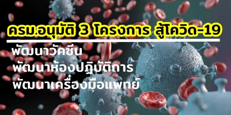 | • ครม. อนุมัติ 3 โครงการ พัฒนาวัคซีน - ห้องปฏิบัติการ- เครื่องมือแพทย์ สู้โควิด-19 |