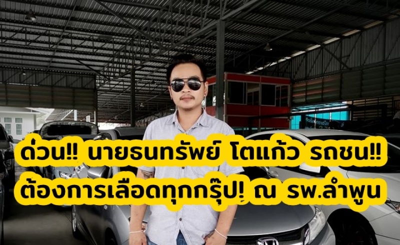ด่วน!! นายธนทรัพย์ โตแก้ว รถชน!! ต้องการเลือดทุกกรุ๊ป! ณ รพ.ลำพูน