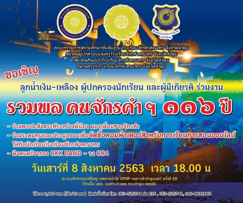 8 สิงหา63 ลูกน้ำเงินเหลือง เชิญร่วมงาน รวมพลคน จักรคำฯ 116 ปี