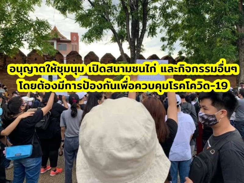 | • อนุญาตให้ชุมนุมได้ เปิดสนามชนไก่ และกิจกรรมอื่นๆ โดยต้องมีการป้องกันเพื่อควบคุมโรคโควิด-19 |