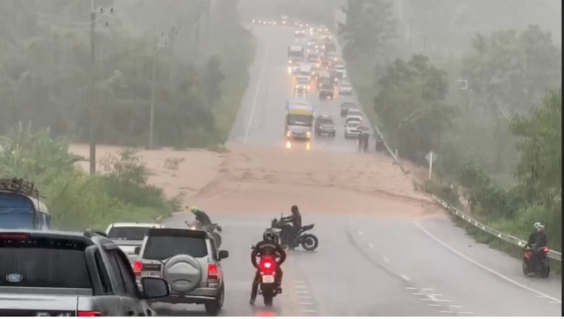 14.45น. ถนนขาด​ตรงเลยตู้แม่โถ​ ไปแม่ขะจาน​ จ.เชียงราย