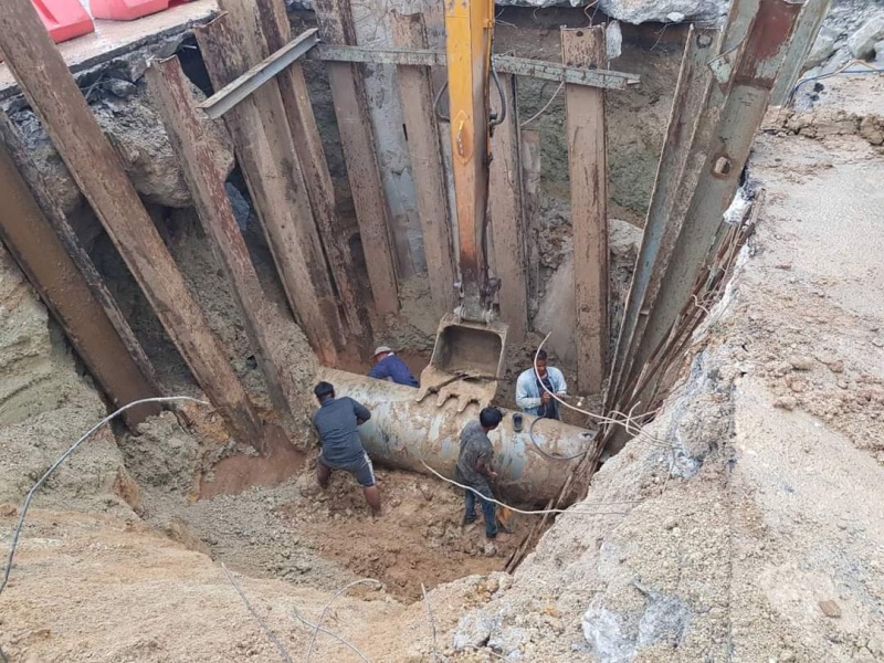 การประปาส่วนภูมิภาคสาขาเชียงใหม่ (ชั้นพิเศษ) กำลังเชื่อมประกอบ sheet pile และตัดคอนกรีตเพื่อขุดเปิดขยายพื้นที่ทำงานเนื่องจากดินสไลด์ บริเวณหน้างาน ส่งผลให้กำหนดการแล้วเสร็จต้องเลื่อน ออกไปจากเวลาเดิมครับ