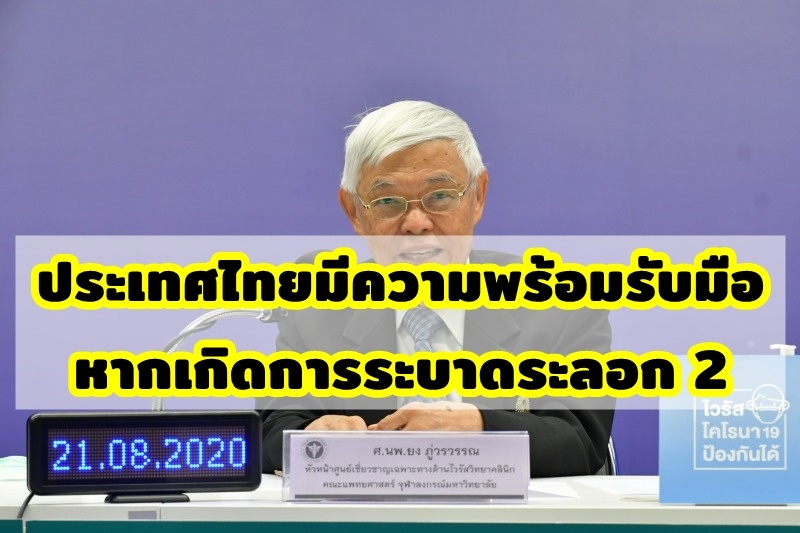 ผู้เชี่ยวชาญเฉพาะทางด้านไวรัสวิทยาคลินิก จุฬาลงกรณ์มหาวิทยาลัย เผยประเทศไทยมีความพร้อมรับมือหากเกิดการระบาดระลอก 2 ย้ำความร่วมมือประชาชน อดทน มีวินัยป้องกันตนเอง ล้างมือ สวมหน้ากาก รักษาระยะห่าง ช่วยป้องกันโควิดระลอก 2 ได้