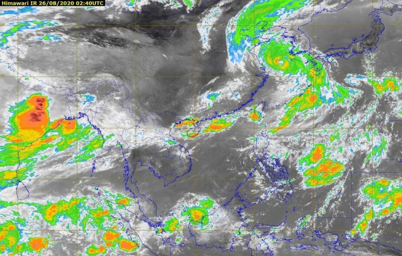 มีเมฆเต็มท้องฟ้า เป็นเมฆชั้นต่ำและเมฆชั้นสูง ตรวจไม่พบกลุ่มฝน ลมตะวันตกเฉียงใต้ ความเร็ว 15-30 กม./ชม. ทะเลมีคลื่นสูงประมาณ 1 เมตร บริเวณที่มีฝนฟ้าคะนองคลื่นสูง 1-2 เมตร