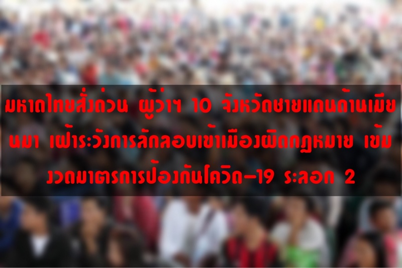 มหาดไทยสั่งด่วน ผู้ว่าฯ 10 จังหวัดชายแดนด้านเมียนมา เฝ้าระวังการลักลอบเข้าเมืองผิดกฎหมาย เข้มงวดมาตรการป้องกันโรค ป้องกันโควิด-19 ระลอก 2
