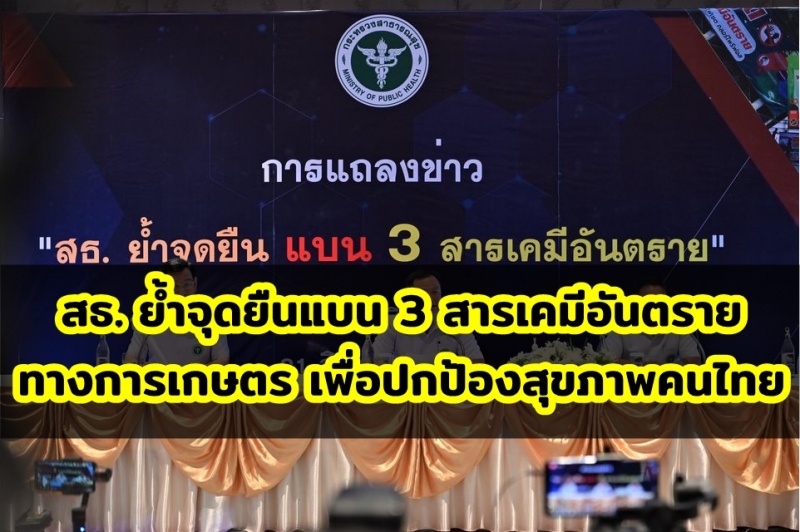 สธ. ย้ำจุดยืนแบน 3 สารเคมีอันตรายทางการเกษตร เพื่อปกป้องสุขภาพคนไทย