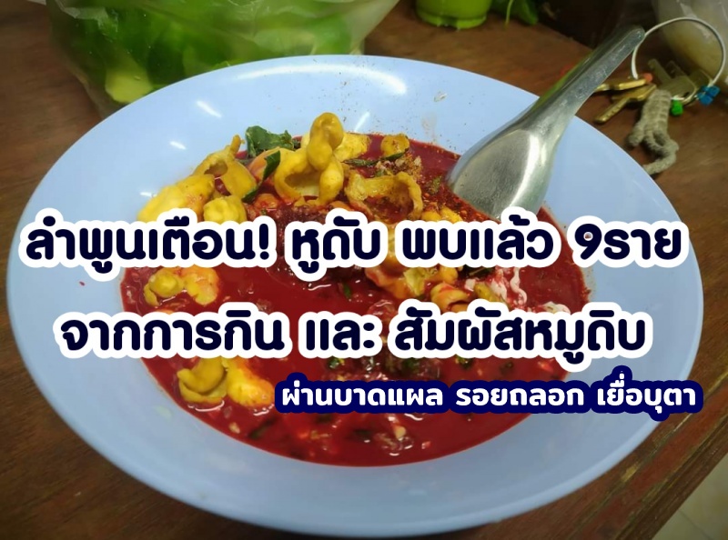 | • ลำพูนเตือน! หูดับ พบแล้ว 9ราย จากการกิน และ สัมผัสหมูดิบ(ผ่านบาดแผล รอยถลอก เยื่อบุตา) |