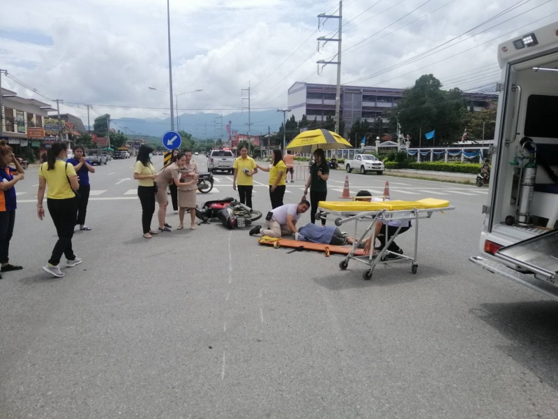 รถยนต์ ชนกับ จยย. พ่ออุ้ยสาหัส แม่อุ้ยเสียชีวิต @หน้าร.ร.ธีรกานท์บ้านโฮ่ง