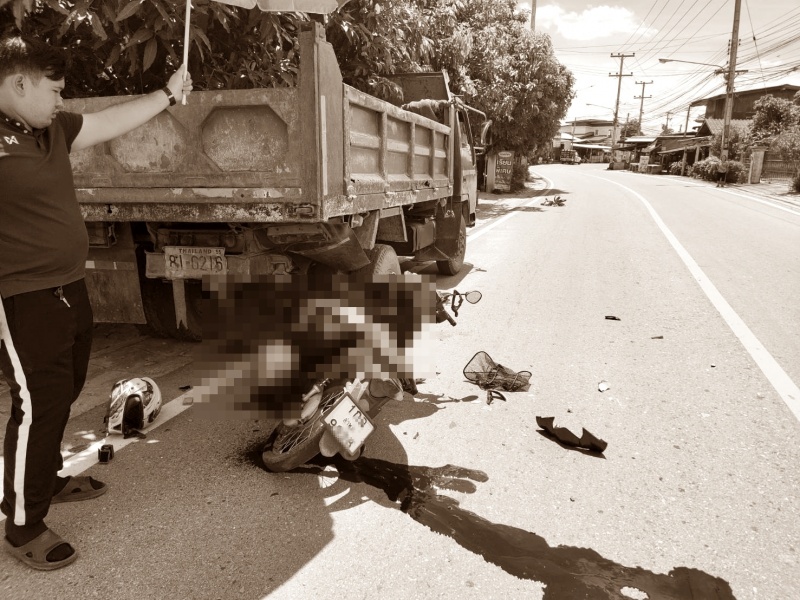 หนุ่ม ขี่ จยย. ชนท้าย รถบรรทุก เสียชีวิต ที่ปากทางม่วงโตน - ท่าลี่(ลำพูน)