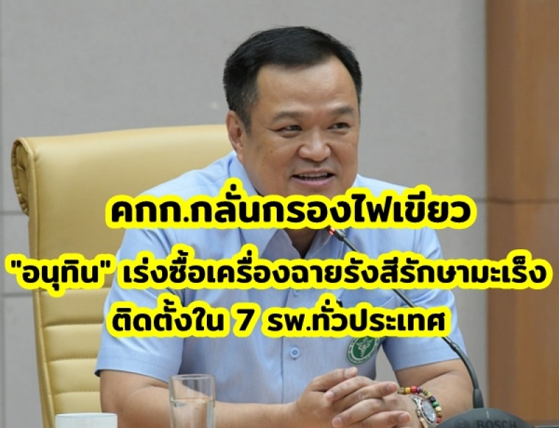 "อนุทิน" เร่งซื้อเครื่องฉายรังสีรักษามะเร็ง ติดตั้งใน 7 รพ.ทั่วประเทศ พัฒนางานบริการประชาชนหลัง คกก.กลั่นกรองไฟเขียวแล้ว