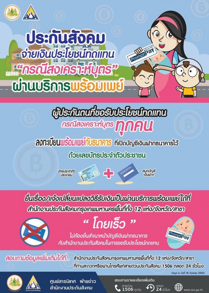 | • รู้ยัง? ผู้ประกันตนรับเงินสงเคราะห์บุตรผ่าน "พร้อมเพย์" ได้แล้ว |