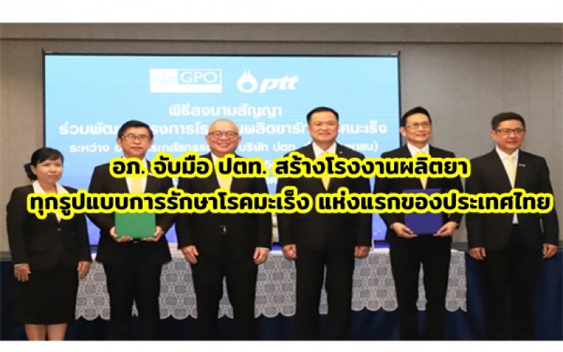 องค์การเภสัชกรรม (อภ.) จับมือ ปตท. สร้างโรงงานผลิตยาทุกรูปแบบการรักษาโรคมะเร็ง แห่งแรกของประเทศไทย หวังลดค่ายาลงมากกว่า 50 เปอร์เซ็นต์