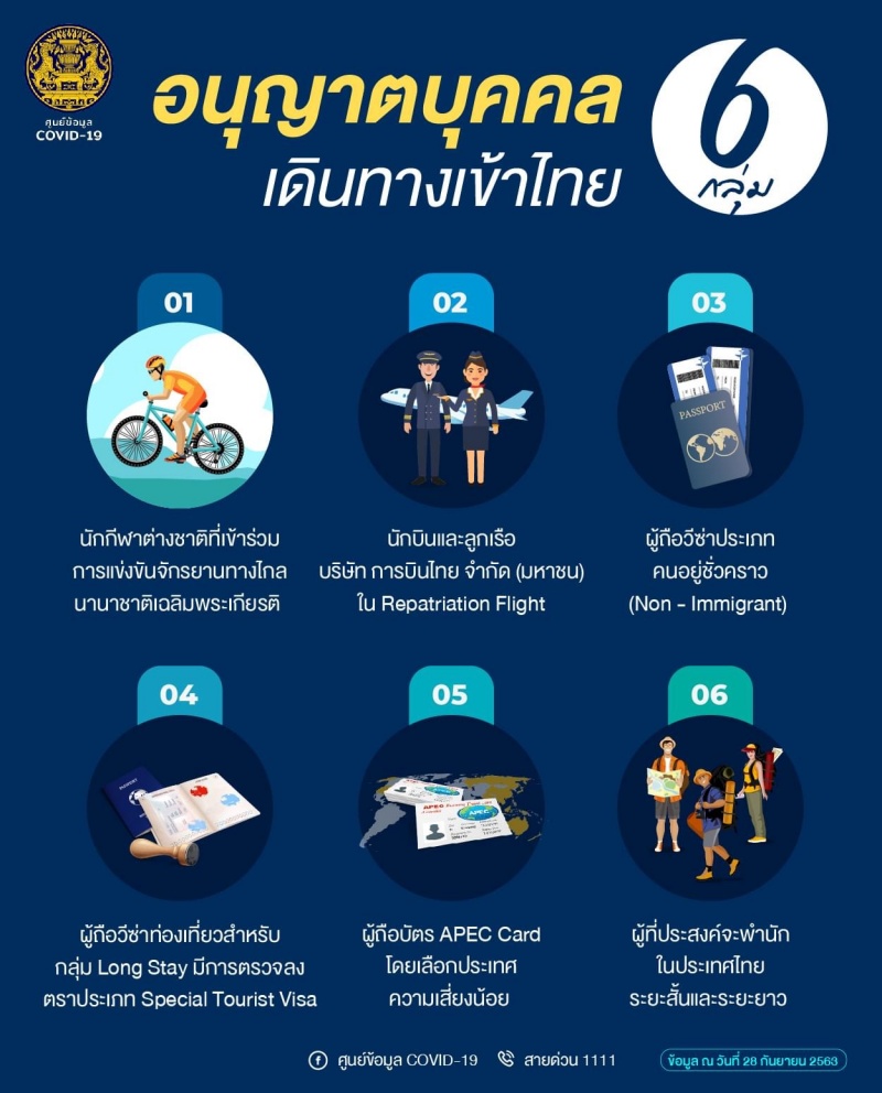 อนุญาตบุคคล 6 กลุ่มเดินทางเข้าไทย