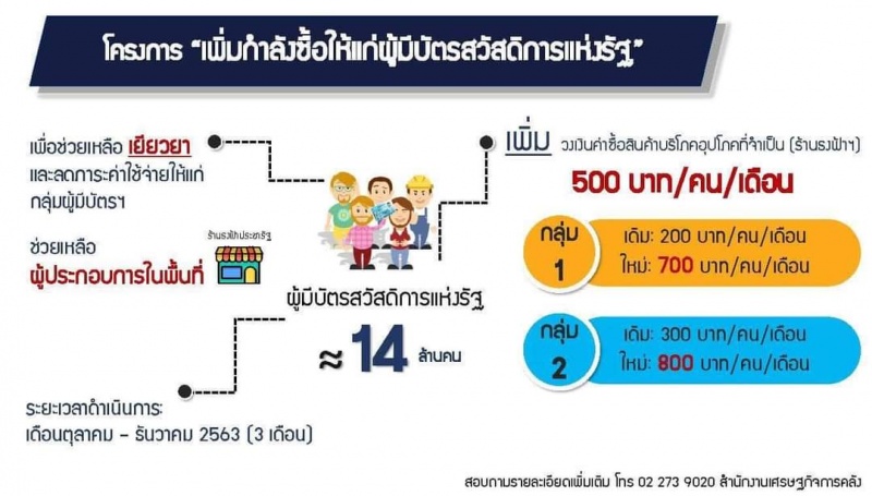 เพิ่มเงิน 500 บาท ให้ผู้ถือบัตรสวัสดิการแห่งรัฐ เป็นเวลา 3 เดือน (ต.ค.-ธ.ค.)