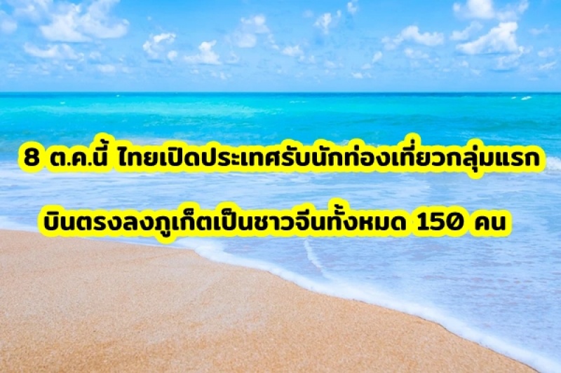 | • 8 ต.ค.นี้ ไทยเปิดประเทศรับนักท่องเที่ยวเช่าเครื่องบินเหมาลำบินตรงลงภูเก็ตเป็นชาวจีนทั้งหมด 150 คน |