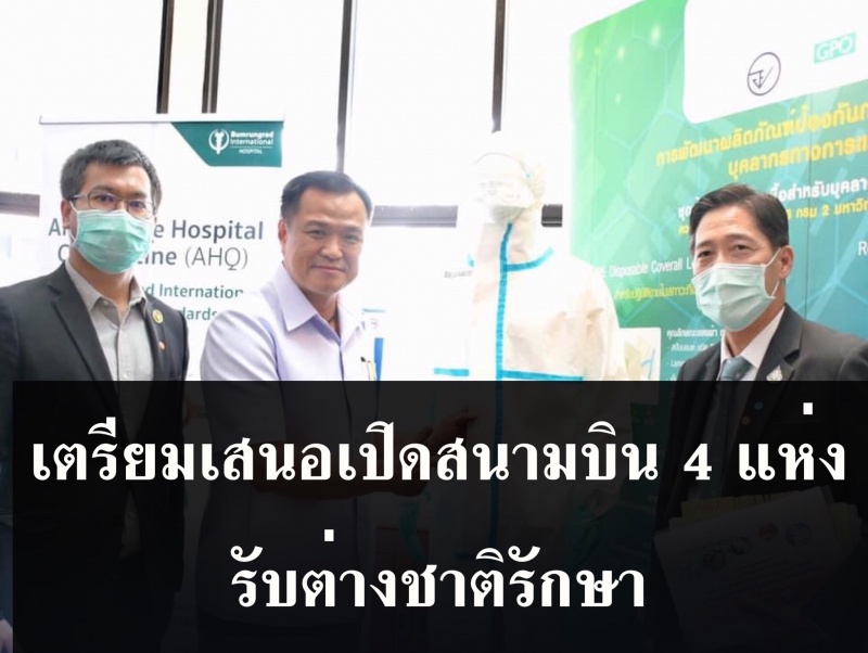 นอกจากนี้ ยังเห็นชอบในหลักการเรื่องการเตรียมเปิดสนามบินหลักอีก 4 แห่ง ได้แก่ ภูเก็ต เชียงใหม่ สมุย และอู่ตะเภา เพื่อรองรับการดำเนินการเรื่อง Medical Program รับผู้ป่วยชาวต่างชาติมารักษาในลักษณะของเที่ยวบินเช่าเหมาลำ การเปิดด่านทางบก 2 แห่ง คือ ด่านบ้านแหลม และด่านบ้านหาดเล็ก จ.จันทบุรี และด่านทางน้ำ 2 แห่ง คือ ท่าเรือแหลมฉบัง และท่าเรือมาบตาพุด โดยจะต้องเสนอไปยังศูนย์บริหารสถานการณ์โรคโควิด 19 หรือ ศบค.เห็นชอบต่อไป รวมถึงเห็นชอบการจัดทำแพคเกจพิเศษ Shopping Online สำหรับผู้ที่เข้ามารับการรักษาพยาบาลในโครงการ AHQ เน้นสินค้ากลุ่มสมุนไพรและโอทอป รวมทั้งยังรับทราบโครงการยกระดับการท่องเที่ยวเชิงสุขภาพจังหวัดภูเก็ตสู่เมืองท่องเที่ยว เชิงสุขภาพระดับโลก